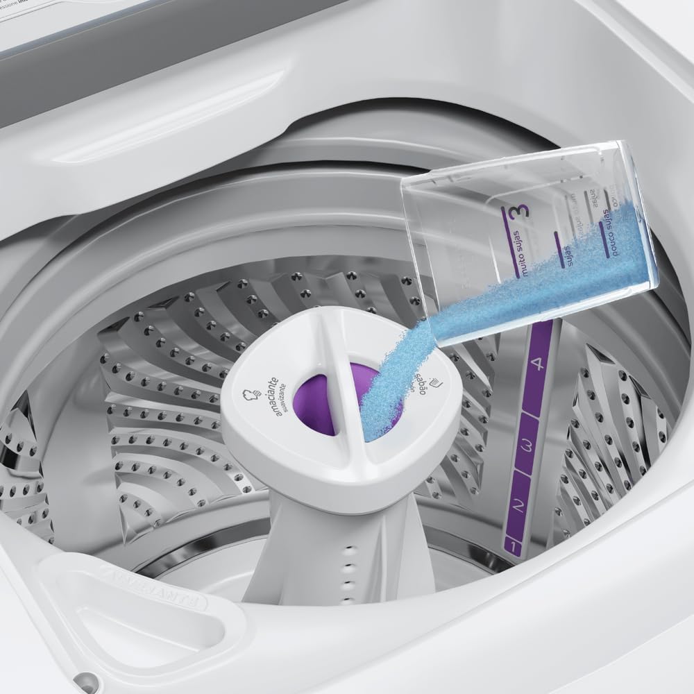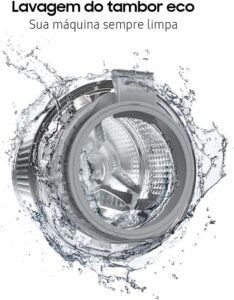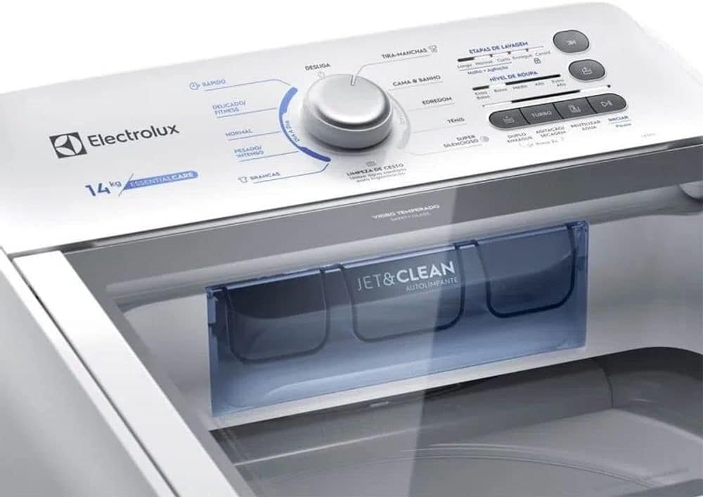 O destaque dela é a tecnologia Jet&Clean: o dispenser de sabão e amaciante é autolimpante, com jatos fortes de água que dissolvem 100% dos produtos, evitando manchas nas roupas e acúmulo de resíduos na máquina.
