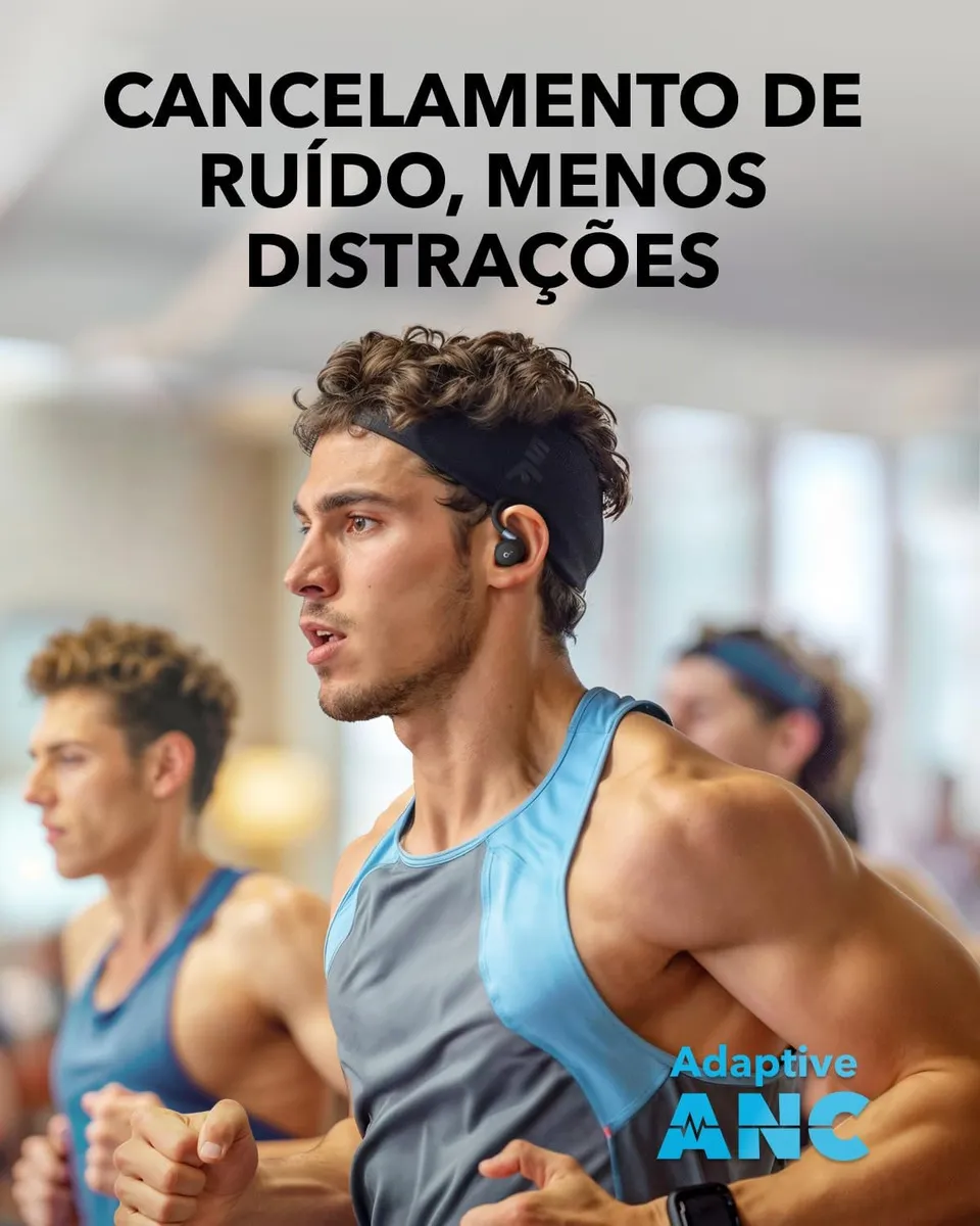 Cancelamento de ruído ativo híbrido (ANC + modo ambiente)
